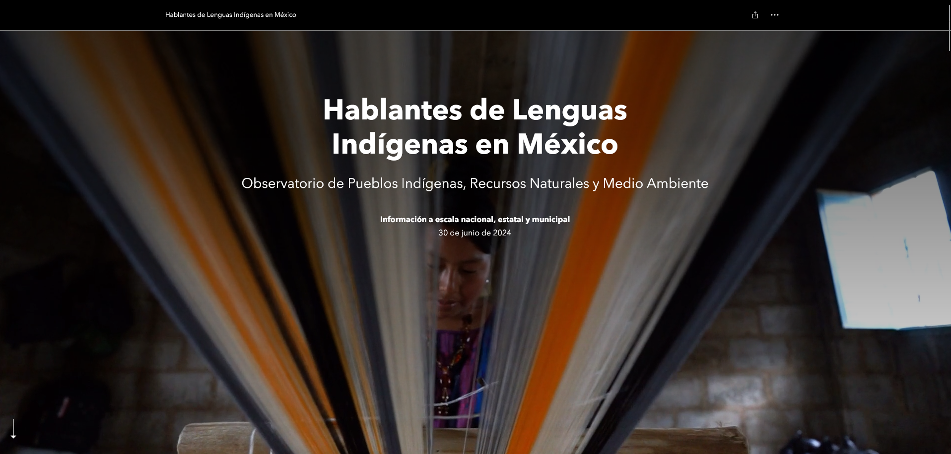 El portal Hablantes de lenguas indígenas de México, presenta una visión cuantitativa y descriptiva sobre la distribución de hablantes de lenguas indígenas en México, con base en los datos del Censo de Población y Vivienda 2020 del Instituto Nacional de Estadística y Geografía (INEGI). Este sitio ofrece interactivamente una serie de mapas en los que se procesan y visualizan datos estadísticos vinculados a la variable de etnicidad, integrados con polígonos vectoriales a escala nacional y estatal. De este modo, es posible representar el número de hablantes según lengua indígena y entidad federativa.